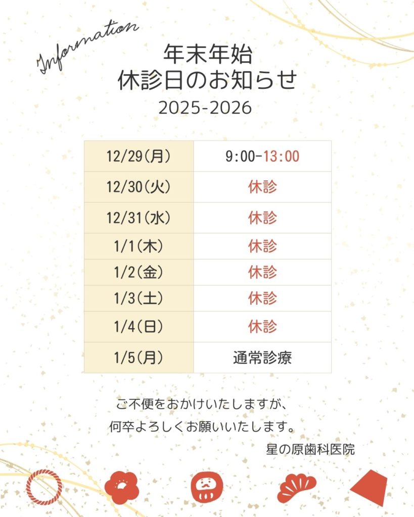 いつも星の原歯科医院にご来院いただき、ありがとうございます。